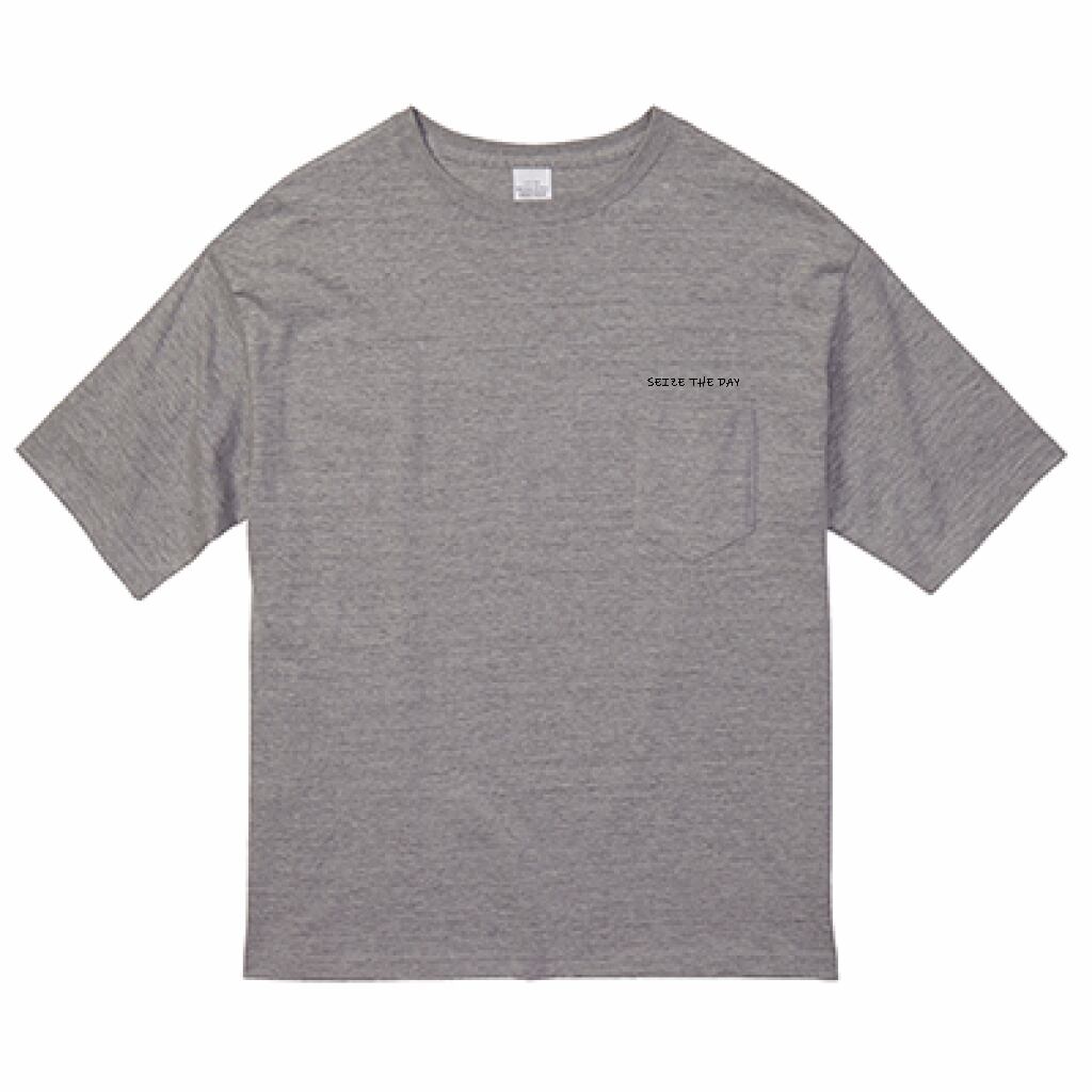 ☆送料込み☆SEIZE THE DAYロゴ(ビッグシルエットTシャツ(ポケット付)) ミックスグレー×ブラック